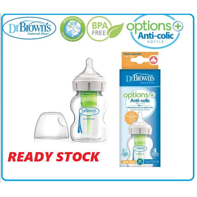 Dr Brown S Options Anti Colic Wide Neck Feeding Bottle 150ml Wb51600 Shopee Malaysia